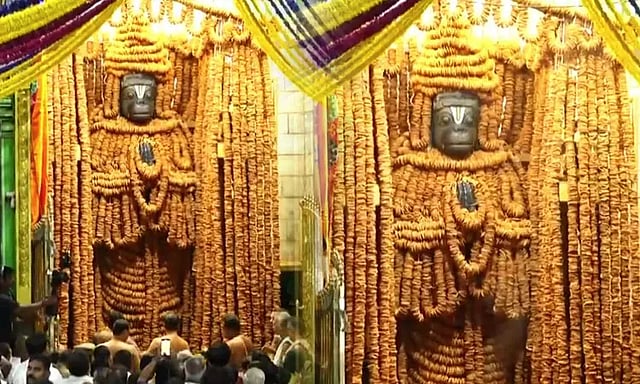 அனுமன் ஜெயந்தியை முன்னிட்டு கோவில் வளாகம் முழுவதும் பல வண்ண பூக்களை கொண்டு அலங்காரம் செய்யப்பட்டுள்ளது. குறிப்பாக கோவிலின் நுழைவு வாயிலில் 'ஸ்ரீஹனுமத் ஜெயந்தி' என்ற வார்த்தை வடிவில் பூக்களை கொண்டு அலங்கார தோரணம் அமைக்கப்பட்டு உள்ளது. மேலும் பக்தர்கள் சிரமமின்றி ஆஞ்சநேயரை தரிசனம் செய்ய ஏதுவாக கட்டண தரிசன வழி மற்றும் இலவச தரிசன வழி என 3 வழிகள் தனித்தனியாக ஏற்படுத்தப்பட்டு உள்ளன. 500-க்கும் மேற்பட்ட போலீசார் பாதுகாப்பு பணியில் ஈடுபட்டுள்ளனர்.