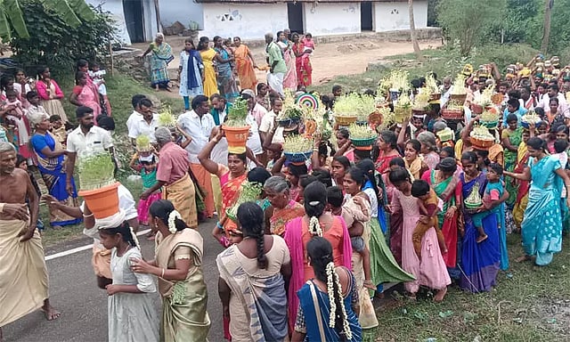 திண்டுக்கல் மாவட்டம் சாணார்பட்டி ஒன்றியம் கோபால்பட்டி அருகே பெருமாள்கோவில்பட்டியில் காளியம்மன், கன்னிமூல கணபதி கோவில் உள்ளது. இந்த கோவிலில் கும்பாபிஷேக விழாவையொட்டி ராமேஸ்வரம், திருச்செந்தூர், அழகர் கோயில், திருமலைக்கேணி, கொடுமுடி உள்ளிட்ட புனித ஸ்தலங்களில் இருந்து தீர்த்த குடங்கள் கொண்டு வரப்பட்டன. இதேபோல் பெண்கள் முளைப்பாரி எடுத்து வந்தனர். தீர்த்த குடங்கள் மற்றும் முளைப்பாரி ஊர்வலமாக கோவில் முன் அமைக்கப்பட்ட யாகசாலைக்கு கொண்டு வரப்பட்டன.