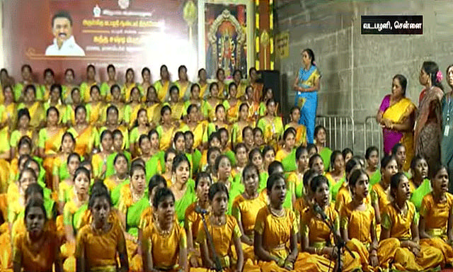 இதில் சென்னை கபாலீஸ்வரர் கோவில் கல்லூரி மாணவிகள் 50 பேர், ஏகாம்பரேஸ்வரர் கோவில் பள்ளி மாணவிகள் 69 பேர் என மொத்தம் 119 கல்லூரி மற்றும் பள்ளி மாணவிகள் பங்கேற்று, கந்தசஷ்டி கவச பாடல்களை ஒரு சேர பாடி அசத்தினர்.