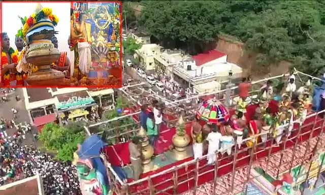 விழாவின் சிகர நிகழ்ச்சியாக கும்பாபிஷேகம் இன்று விமரிசையாக நடைபெற்றது. யாகசாலையில் இருந்து தீர்த்த கலசங்கள் எடுத்துச் செல்லப்பட்டு, ராஜகோபுர கும்பங்களில் புனிதநீர் ஊற்றி கும்பாபிஷேகம் செய்யப்பட்டது. இதைத் தொடர்ந்து 15 இடங்களில் சுழல் கருவி மூலம் பக்தர்கள் மீது புனித தீர்த்தம் தெளிக்கப்பட்டது.