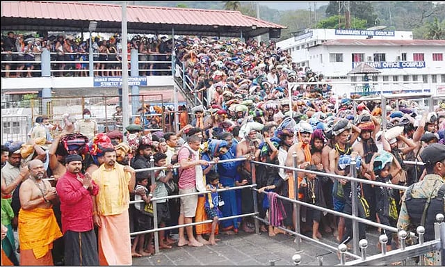 மண்டல, மகர விளக்கு பூஜைக்காக சபரிமலை அய்யப்பன் கோவிலில் கடந்த மாதம் 16-ந்தேதி நடை திறக்கப்பட்டது. 17-ந்தேதியில் இருந்து பூஜைகள் நடைபெற்று வருகிறது. அதைத்தொடர்ந்து சாமியை தரிசனம் செய்ய நாள் தோறும் ஆயிரக்கணக்கான பக்தர்கள் சபரிமலைக்கு வந்தபடி உள்ளனர். இதனால் கூட்டம் அலைமோதுகிறது.