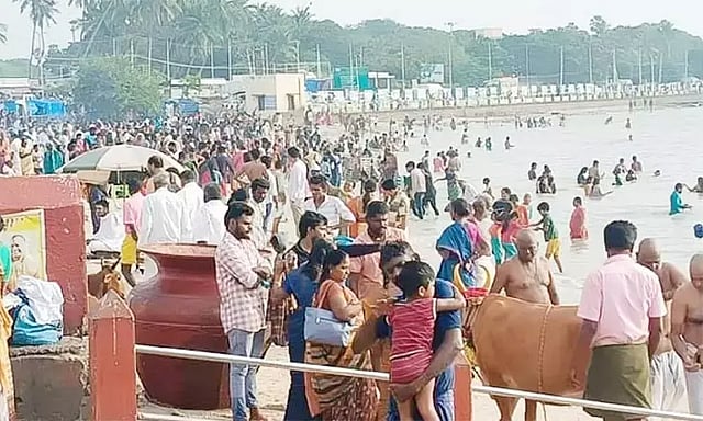 ராமேஸ்வரம் அக்னி தீர்த்தக் கடலில் புனித நீராடி முன்னோர்களுக்கு தர்ப்பணம் கொடுப்பது புண்ணியமாக கருதப்படுகிறது. இதன் காரணமாக மாதந்தோறும் அமாவாசை நாட்களில் ராமேஸ்வரத்தில் பக்தர்கள் கூட்டம் அலைமோதும்.