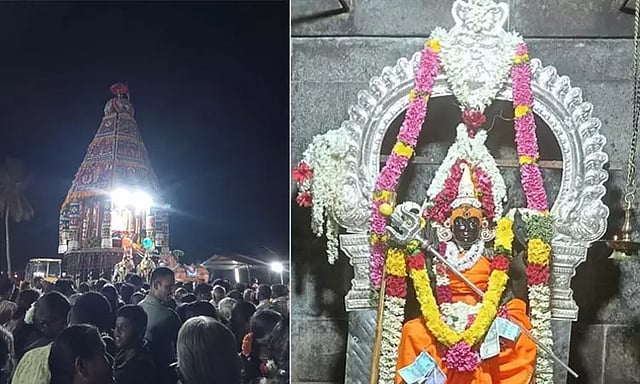 அதனை தொடர்ந்து இரவு 12 மணிக்கு மேல் தேரோட்டம் நடைபெற்றது. ஏராளமான பக்தர்கள் வடம் பிடித்து தேரை இழுத்தனர். தேர் முக்கிய வீதிகள் வழியாக சென்று நிலையை அடைந்தது. இன்று (வெள்ளிக்கிழமை) அதிகாலை ஒரு மணி அளவில் அம்மன் வண்டிக்கால் பார்த்து வருதல் நிகழ்ச்சியும், காலை 6:00 மணியளவில் அம்மன் ஆற்றுக்கு சென்று நீராடி வருதல் நிகழ்ச்சியும், காலை 10 மணி அளவில் காப்பு அவிழ்த்தால் நிகழ்ச்சியும் நடைபெற்றது. இரவு 11 மணியளவில் அம்மன் மஞ்சள் நீராடுதல் நிகழ்ச்சி நடைபெறுகிறது.
