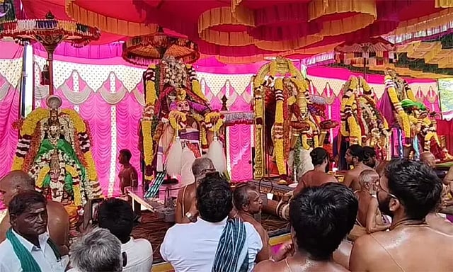 பின்னர் அந்த கிராமத்தில் உள்ள பஞ்ச கருட சேவை மைதானத்தை அடைந்த உற்சவர்களுக்கு ஸ்ரீநிகமாந்த தேசிகருடன் தர்ஸன தாம்பூலம் சமர்ப்பிக்கும் நிகழ்ச்சி நடைபெற்றது. இதையடுத்து உற்சவர் சுவாமிகளுக்கு மஹா ஆரத்தி காண்பிக்கப்பட்டது. நிகழ்ச்சியில் மஹோத்ஸவ ஒருங்கிணைப்பு மற்றும் ஏற்பாடு கமிட்டியினர் மற்றும் பொதுமக்கள் பங்கேற்றனர்.