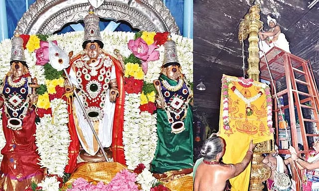 இதனையடுத்து அஸ்திரதேவர், விநாயகர் சிலை முன்பு மயூரயாகம், வாத்திய பூஜை நடந்தது. பின்னர் காலை 11 மணிக்கு வேதமந்திரங்கள் முழங்க கொடிமரத்தில் கொடியேற்றப்பட்டது. அப்போது அங்கு திரண்டிருந்த பக்தர்கள் "வெற்றிவேல் முருகனுக்கு அரோகரா... வீரவேல் முருகனுக்கு அரோகரா" என சரண கோஷங்களை எழுப்பினர்.