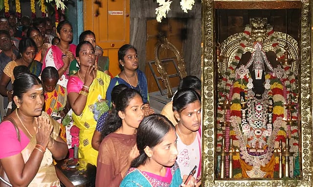தூத்துக்குடி வைகுண்டபதி பெருமாள் கோவிலில் புரட்டாசி 4-வது சனிக்கிழமையை முன்னிட்டு இன்று பெருமாள் திருப்பதி வெங்கடாஜலபதி அலங்காரத்தில் பக்தர்களுக்கு காட்சி அளித்தார்.
