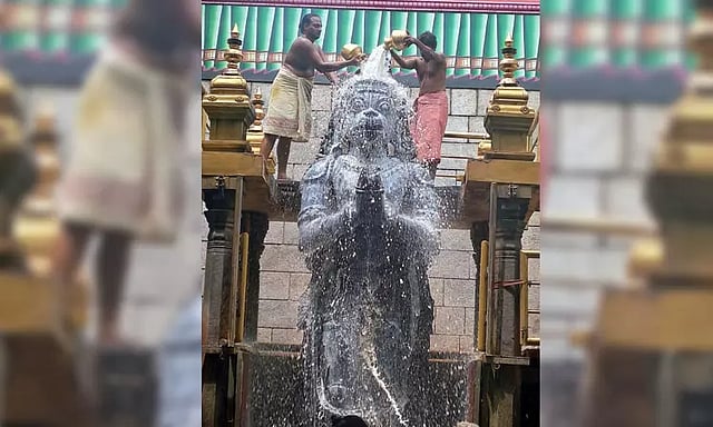 இன்று அதிகாலையில் நடை திறக்கப்பட்டு, சாமிக்கு 1008 வடைமாலை சாத்தப்பட்டது. பின்னர் பட்டாச்சாரியர்கள் குடம், குடமாக பால் ஊற்றி ஆஞ்சநேயருக்கு அபிஷேகம் செய்தனர். தொடர்ந்து எண்ணெய், பஞ்சாமிர்தம், மஞ்சள், சீயக்காய் உள்ளிட்ட நறுமண பொருட்களால் ஆஞ்சநேயருக்கு சிறப்பு அபிஷேகம் செய்யப்பட்டது. பின்னர் மலர் அலங்காரத்தில் ஆஞ்சநேயர் பக்தர்களுக்கு அருள்பாலித்தார்.