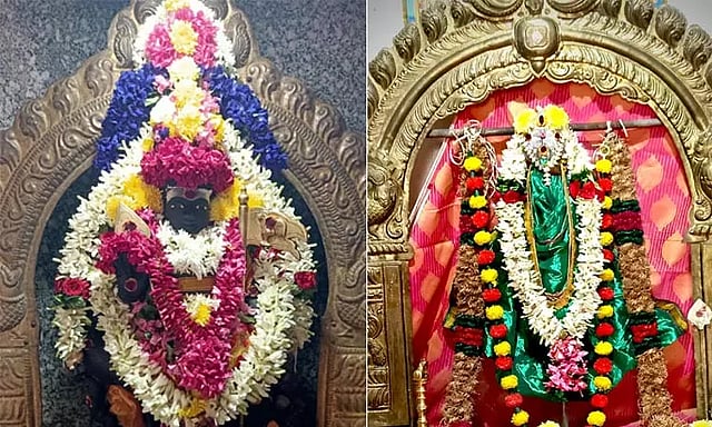நன்செய் இடையாறு காவேரி ஆற்றங்கரை அருகே உள்ள மூங்கில் வனத்து சங்கிலி கருப்பண்ணசாமி கோவிலில் உள்ள வள்ளி தெய்வானை சமேத சுப்பிரமணியர்,