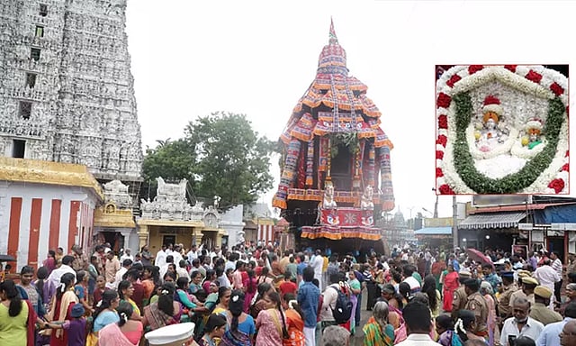 பின்னர் தாணுமாலய சுவாமிக்கு சிறப்பு அபிஷேகம் மற்றும் அலங்கார தீபாராதனைகள் நடந்தன. காலை 7.50 மணியளவில் தட்டு வாகனங்களில் சுவாமி மற்றும் அம்பாளும், அறம் வளர்த்த நாயகி அம்மனும், விநாயகரும் தனித்தனியாக எழுந்தருளி கோவிலில் இருந்து வெளியே வந்தனர். அப்போது துப்பாக்கி ஏந்திய போலீசார் அணிவகுத்து மரியாதை செலுத்தினர்.