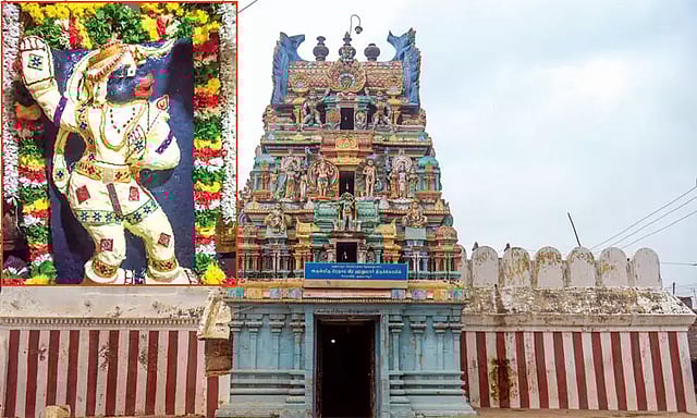 இதன் காரணமாக சூரிய, சந்திர கிரகணம்போது ராகுவும்-கேதுவும் சூரியனையும், சந்திரனையும் கவ்வி பிடிப்பதாக கூறப்படுகிறது. இதனை எடுத்துக்காட்டும் வகையில் இக்கோவிலில் சூரிய, சந்திரனை பாம்பு (ராகு-கேது) கவ்வி பிடிப்பதை போன்ற சிற்பம் உள்ளது. பக்தர்கள் அதன் அடியில் நின்று பிரார்த்தனை செய்தால் ராகு-கேது தோஷம் நீங்கும் என்ற நம்பிக்கை உள்ளது.