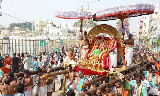 திருச்சானூர் பத்மாவதி தாயார் கோவிலில் கார்த்திகை பிரம்மோற்சவ விழா கோலாகலமாக நடைபெற்று வருகிறது. தினமும் காலை மற்றும் இரவில் தாயார் வாகனங்களில் எழுந்தருளி மாடவீதிகளில் வலம் வந்து பக்தர்களுக்கு அருள்பாலிக்கிறார்.