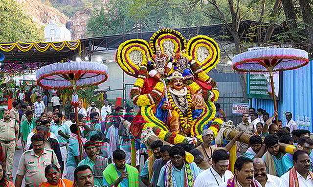திருப்பதி கபிலத்தீர்த்தத்தில் உள்ள கபிலேஸ்வரர் கோவிலில் 10 நாட்கள் நடைபெறும் பிரம்மோற்சவ விழா நேற்று முன்தினம் கொடியேற்றத்துடன் தொடங்கியது. முதல் நாள் இரவு ஹம்ச வாகன வீதிஉலா நடந்தது. அதில் கங்கா பவானி சமேத சோமஸ்கந்த மூர்த்தி, காமாட்சி தாயார் எழுந்தருளி திருப்பதி வீதிகளில் உலா வந்து பக்தர்களுக்கு அருள் பாலித்தனர்.