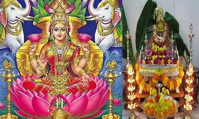பூஜைக்கான கலசத்தை மகாலட்சுமி போன்று அலங்காரம் செய்யவேண்டும். மனைப்பலகையில் கும்பம் வைத்து, கும்பத்தில் உள்ள தேங்காயில் அம்மன் முகம், கிரீடம் வைக்கவேண்டும். அத்துடன் ஆடை அணிகலன்கள் அணிவித்து, மஞ்சள், குங்குமம் வைத்து, பூச்சூட்டி அலங்கரிக்கவேண்டும். பின்னர், வீட்டின் வாசலில் வைத்து மகாலட்சுமியை அந்த கலசத்தில் எழுந்தருளும்படி வேண்டிக்கொள்ளவேண்டும். வாசலில் உள்நிலைப்படி அருகே நின்று வெளியில் நோக்கி கற்பூர ஆரத்தி காட்டி மகாலட்சுமியை வீட்டுக்குள் வருமாறு அழைக்க வேண்டும். பின்னர் மகாலட்சுமியை வீட்டிற்குள் அழைத்துச் சென்று பூஜைக்கான இடத்தில் அமரச் செய்யவேண்டும்.