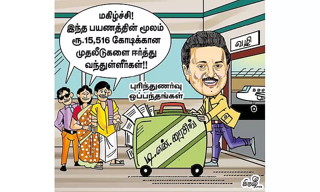 முதல்-அமைச்சர் மு.க.ஸ்டாலின் 2030-க்குள் ஒரு டிரில்லியன் டாலர் அதாவது ரூ.85 லட்சம் கோடி பொருளாதாரத்தை உருவாக்கியே தீருவேன் என்ற இலக்கோடு தமிழ்நாட்டை கொண்டுசெல்ல அனைத்து முயற்சிகளையும் எடுத்துவருகிறார். இதற்காக உள்நாட்டு தொழில் அதிபர்களையும், சர்வதேச தொழில் அதிபர்களையும் சந்தித்து தமிழ்நாட்டில் அரசு சார்பில் வழங்கப்படும் ஊக்க சலுகைகளை விளக்கி கூறி வருவதைத்தொடர்ந்து, புதுப்புது தொழிற்சாலைகள் தொடங்கப்படுவதால் தமிழ்நாடு தொழில் மயமாகிவருகிறது. தனது முயற்சியின் அங்கமாக ஜெர்மனி, இங்கிலாந்து நாடுகளுக்கு 8 நாள் சுற்றுப்பயணம் சென்றுவிட்டு நேற்று காலையில் சென்னை திரும்பியுள்ளார்.