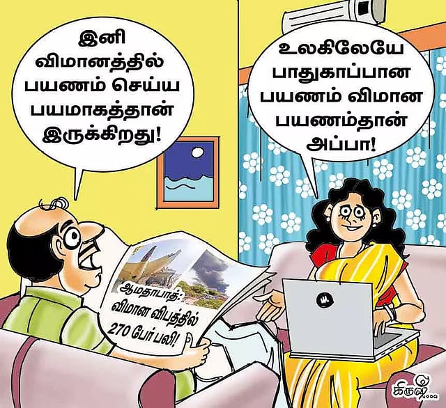 ஆமதாபாத் விமான விபத்துக்கான காரணம் என்னவென்று இன்னும் விசாரணை முடிவுகள் வரவில்லை. விமானியின் தவறா?, பறவைகள் கூட்டம் இரு எந்திரங்களுக்குள்ளும் சிக்கியதா?, எரிபொருளில் கோளாறா? அல்லது விமான எந்திரங்களில்தான் கோளாறா? என்பது இன்னும் தெரியவில்லை. பொதுவாக விமான நிலையத்தை சுற்றிலும் புல் வெளிகள் இருந்தால் பூச்சிகள் இருக்கும், அந்த பூச்சிகளை கொத்தி தின்பதற்காக பறவைகள் கூட்டம், கூட்டமாக வரும். மேலும் இந்த விபத்தில் அரசு மருத்துவக்கல்லூரி மீது விமானம் விழுந்து நொறுங்கியிருக்கிறது. விமான நிலையத்தின் இவ்வளவு அருகில் 6 மாடி கட்டிடம் கட்ட எப்படி அனுமதி வழங்கப்பட்டது என்பதும் விமர்சனத்துக்கு உள்ளாகி இருக்கிறது. இவை அனைத்தும் குறிப்பிட்ட இந்த ஒரு விமான விபத்தைப்பற்றியே சுற்றி சுற்றி வரும் கருத்துகளாகும். ஆனால் சாலைப்போக்குவரத்தை விட ரெயில் போக்குவரத்தை விட விமான பயணமே பாதுகாப்பானது என்று ஆய்வுகள் தெரிவிக்கின்றன.