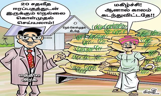 கடும் உழைப்பை நல்கி, பெரும் செலவுகளைத் தாங்கி, பயிர் சாகுபடி செய்யும் விவசாயிக்கு ஒரு காலத்திலும் நிச்சயமாக இவ்வளவு வருமானம் வரும் என்று மகிழ்ச்சியோடு எதிர்பார்க்கமுடியாது. ஏனெனில், இயற்கையை ஒருபோதும் விவசாயிகளால் கணிக்க முடியாது. கடந்த மாதம் இறுதியில் தொடங்கி ஒரு வாரம் பெய்த பருவம் தவறிய மழையால், பெரும் இழப்புக்கு காவிரி டெல்டா மாவட்ட விவசாயிகள் ஆளாகியுள்ளார்கள். சம்பா பயிர் சாகுபடி செய்து நெல் பயிர்கள் நன்றாக விளைந்து அறுவடைக்கு தயாராக இருந்த நேரத்தில், பருவம் தவறிய கனமழையால், வயல்கள் எல்லாம் ஏரிகளோ என்று எண்ணும் அளவுக்கு, பயிர்கள் நீரில் மூழ்கி நின்றன. விவசாயிகள் வயல்களில் தேங்கியிருந்த நீரை அகற்றுவதற்கு திணறிப்போய்விட்டார்கள். நெற்கதிர்கள் எல்லாம் நீரில் மூழ்கியிருந்ததால், ஈரப்பதம் அதிகமாக இருந்தது.