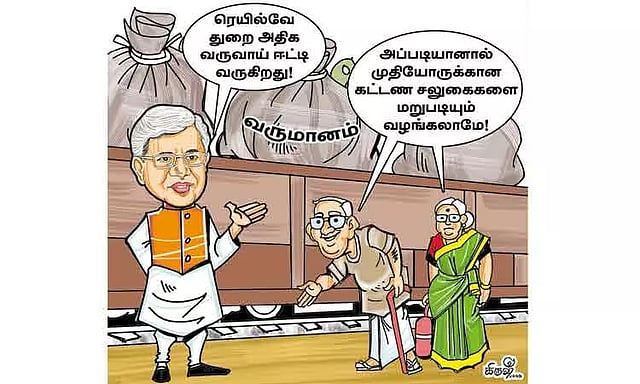 கொரோனாவுக்கு முன்பு 60 வயதுக்கு மேற்பட்ட ஆண்களுக்கும், மூன்றாம் பாலினத்தவர்களுக்கும் ரெயில் டிக்கெட்டில் 40 சதவீத சலுகையும், 58 வயதுக்கு மேற்பட்ட பெண்களுக்கு 50 சதவீத சலுகையும் வழங்கப்பட்டு வந்தது. 2020-ம் ஆண்டு மார்ச் மாதம் 20-ந்தேதி முதல் இந்த சலுகை நிறுத்தப்பட்டு விட்டது. அதில் இருந்து கடந்த பிப்ரவரி 28-ந்தேதிவரை ஆண், பெண் மூத்த குடிமக்கள் மற்றும் மூன்றாம் பாலினத்தவர்கள் என 31.35 கோடி பேர் பயணம் செய்திருக்கிறார்கள். இவர்களுக்கு கட்டண சலுகை கொடுக்காததால் ரெயில்வேக்கு இந்த 5 ஆண்டுகளிலும் சேர்த்து ரூ.8,913 கோடிதான் மிச்சமாகியிருக்கிறது. மூத்த குடிமக்கள் தங்களின் 60 வயது வரை அரசாங்கத்துக்கு பல வரிகளை கொடுத்து வருவாயை தந்து இருக்கிறார்கள். அவ்வளவு நாளும் உழைத்து, உழைத்து அரசாங்கத்துக்கு பல்வேறு வரிகளை கட்டிய அவர்களின் முதிர் வயதில் தினமும் பயணம் செய்யப்போவதும் இல்லை. அவர்களால் அது முடியவும் செய்யாது. இதுமட்டுமல்லாமல் அவர்கள் தேசிய வளர்ச்சிக்கு அரும் பங்கை நல்கியவர்கள். அவர்களுக்கு நன்றி கடன் செலுத்தவேண்டியது மத்திய அரசாங்கத்தின் கடமை ஆகும். எனவே கருணை அடிப்படையில் 60 வயதை தாண்டியவர்களுக்கு ரெயிலில் கட்டண சலுகை அளிக்க வேண்டும்.