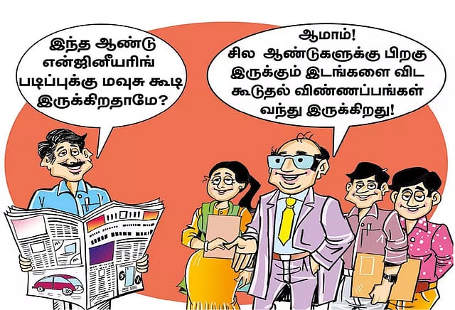 ஆக, கையில் இருக்கும் இடங்களைவிட சேரவரும் மாணவர்கள் அதிகம் என்ற நிலையில், இந்தப் படிப்புக்கு மவுசு அதிகரித்துள்ளது. அரசு ஒதுக்கீட்டில் கலந்தாய்வு மூலம் சேருவதற்கு இவ்வளவு மாணவர்கள் திரண்டுவந்து இருப்பதை பார்த்து, என்ஜினீயரிங் கல்லூரியில் சேரவேண்டாம் என்ற முடிவில் இருந்த மாணவர்கள்கூட, இப்போது சுயநிதி கல்லூரி நிர்வாக ஒதுக்கீட்டில் சேரவேண்டும் என்ற முடிவில் உள்ளனர்.