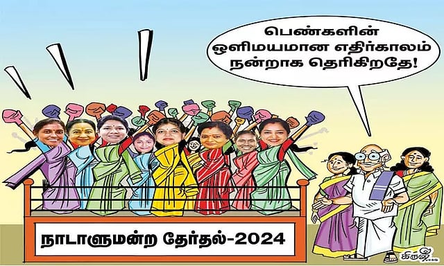 என்றாலும், இப்போதே நாடாளுமன்ற தேர்தலில் போட்டியிடுபவர்களின் எண்ணிக்கை கொஞ்சம் கொஞ்சமாக உயர்ந்துவருவது மகிழ்ச்சியளிக்கிறது. கடந்த மக்களவையில் 78 பெண் உறுப்பினர்கள் இருந்த நிலையில், இப்போது போட்டியிடும் வேட்பாளர்களின் எண்ணிக்கை உயர்ந்திருக்கிறது. தமிழ்நாட்டை எடுத்துக்கொண்டால், 39 தொகுதிகளில் 2009-ம் ஆண்டு தேர்தலில் ஒரு பெண்தான் வெற்றி பெற்றிருந்தார். 2014 தேர்தலில் 55 பெண்கள் போட்டியிட்டு 4 அ.தி.மு.க. பெண் உறுப்பினர்கள் வெற்றி பெற்றனர். 2019-ம் ஆண்டு நடந்த தேர்தலில் போட்டியிட்ட பெண்களின் எண்ணிக்கை 67 ஆக உயர்ந்தாலும் கனிமொழி (தூத்துக்குடி), தமிழச்சி தங்கபாண்டியன் (தென்சென்னை) ஆகியோர் தி.மு.க. உறுப்பினர்களாகவும், ஜோதிமணி (கரூர்) காங்கிரஸ் உறுப்பினராகவும் 3 பேர் மட்டுமே தேர்ந்தெடுக்கப்பட்டனர்.