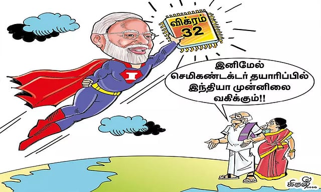 இந்த நிலையில் டெல்லியில் செமிகான் இந்தியா -2025 என்ற சர்வதேச 3 நாட்கள் கருத்தரங்கு நடந்தது. இதனை தொடங்கி வைத்த பிரதமர் நரேந்திர மோடியிடம், இஸ்ரோவின் விக்ரம் சாராபாய் விண்வெளி மையம் மற்றும் செமி கண்டக்டர் ஆய்வகம் ஆகியவை இணைந்து உருவாக்கிய செமிகண்டக்டர் சிப் ஆன விக்ரம்-32 வழங்கப்பட்டது. இந்தியாவில் கொடி கட்டிப்பறக்க போகும் சிப் உற்பத்திக்கு இது ஒரு தொடக்கமாகும். இனி இந்தியா விண்ணில் செலுத்தப்போகும் செயற்கைகோள்களில் எல்லாம் இந்த விக்ரம்-32 சிப் பெரும் பணியாற்றும். அதேபோல், இந்தியாவில் சிப் தயாரிக்க ஏற்கனவே அனுமதி வழங்கப்பட்ட கெய்ன்ஸ் செமிகான் நிறுவனம் தனது சிப்-ஐ அடுத்த மாதம் வெளியிடுகிறது. ஆக அடுத்தடுத்து பல நிறுவனங்கள் தங்கள் உற்பத்தியை பெருக்கி, சிப்-களை வெள்ளம் போல மார்க்கெட்டுக்கு கொண்டு வர வேகம் எடுத்துவிட்டன.