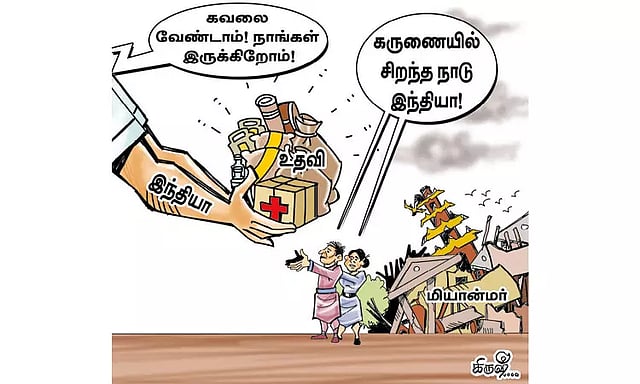 இதில், 2 ஆயிரத்துக்கும் மேற்பட்டவர்கள் உயிரிழந்துவிட்டனர். 3,400 பேர் காயம் அடைந்திருக்கிறார்கள். இன்னும் மீட்பு பணி தொடர்கிறது. இந்த தகவல் கிடைத்த உடனேயே பேரிடர்களின்போது முதலில் உதவி அளிக்கும் நாடு என்ற அடைமொழியை பெற்று, ஆபத்பாந்தவனாக திகழும் இந்தியா தேசிய பேரிடர் மீட்பு படையை அனுப்பியது. முதலில் மருத்துவ குழுவினரை ஏற்றிக்கொண்டு ஒரு விமானம் சென்றது. தொடர்ந்து மற்ற மீட்பு படையினர் சென்றனர். அவர்கள் தற்காலிக மருத்துவமனையை அமைத்து சிகிச்சையை தொடங்கியுள்ளனர். கிழக்கு கடற்படையை சேர்ந்த கப்பல்களான சத்புத்ரா, சாவித்திரி ஆகியவை நிவாரண பொருட்களை ஏற்றிக்கொண்டு மியான்மரில் உள்ள யாங்கூனுக்கு சென்றன. மேலும் 2 கப்பல்களும் புறப்பட்டுவிட்டன. இந்த கப்பல்களில் உணவு பொருட்கள், அத்தியாவசிய மருந்துகள், ஆடைகள், குடிநீர் உள்ளிட்ட 52 டன் நிவாரண பொருட்கள் அனுப்பப்பட்டுள்ளன. இந்த நடவடிக்கைக்கு மிக பொருத்தமாக ஆபரேஷன் பிரம்மா என்று பெயரிடப்பட்டுள்ளது. இந்தியாவை தொடர்ந்து மற்ற நாடுகளும் நிவாரண உதவிகளை செய்யத்தொடங்கிவிட்டன. மனிதநேயத்துக்கு இந்தியா வழிகாட்டுகிறது.