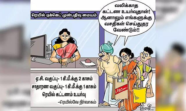 முன்பதிவு செய்யாத பெட்டியில் பயணம் செய்தால் முதல் 500 கிலோ மீட்டருக்கு கட்டண உயர்வு இல்லை. அதற்கு மேல் ஒவ்வொரு கிலோ மீட்டருக்கும் பைசா மட்டுமே உயர்த்தப்படும். அப்படி பார்த்தால் நெல்லைக்கு 60 காசுகள் மட்டுமே உயர்த்தப்படும். மின்சார ரெயில்களுக்கும், மாதாந்திர சீசன் டிக்கெட்டுகளுக்கும் கட்டணம் உயர்த்த திட்டம் இல்லை. கடந்த 2020-ம் ஆண்டில் குளிர்சாதன வசதி செய்யப்பட்ட பெட்டிகளுக்கு கிலோ மீட்டருக்கு 4 காசுகளும், குளிர்சாதன வசதியில்லாத பெட்டிகளுக்கு 2 காசுகளும் உயர்த்தப்பட்டது. அதோடு ஒப்பிடும்போது இப்போது பாதி அளவு மட்டும் உயர்த்தப்பட்டுள்ளது. 5 ஆண்டுகள் கழித்து உயர்த்தப்பட உள்ள இந்த உயர்வு பெரிதும் பாதிக்காது என்றாலும் ரெயில் பயணிகளுக்கு இன்னும் செய்யவேண்டிய வசதிகள் நிறைய இருக்கிறது. பொதுமக்களின் தேவைக்கு ஏற்றவகையில் ரெயில்களின் எண்ணிக்கையை உயர்த்தவேண்டும். ரெயில் பெட்டிகளின் எண்ணிக்கையையும் அதிகரிக்கவேண்டும், ரெயில் நிலையங்களிலும், ரெயில் பெட்டிகளிலும் இன்னும் பராமரிப்பு வசதிகள் செய்யப்பட வேண்டும்.