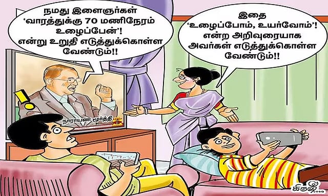 வாரத்துக்கு 70 மணி நேர வேலையா?, அது முடியுமா? என்றும், அப்படி 70 மணி நேரம் உழைத்தால் அதற்கு விலையாக உடல்நலத்தை, நல்ல குடும்ப வாழ்க்கையை, மகிழ்ச்சியை, நிறைவான வாழ்க்கையை அல்லவா கொடுக்கவேண்டும் என்று கடும் விமர்சனங்கள் வருகின்றன.