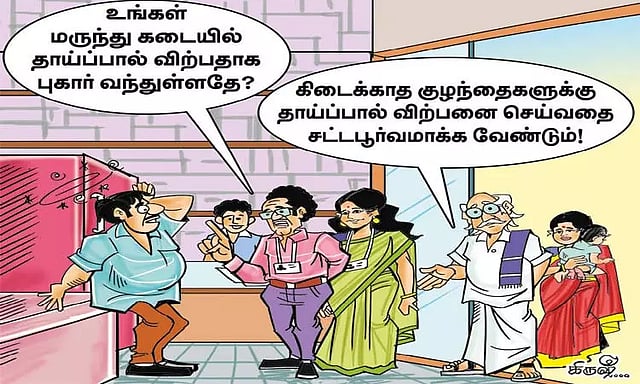கருணை உள்ளம் கொண்ட மனித வடிவில் நடமாடும் தெய்வங்களாக விளங்கும் பல பெண்கள் தன் குழந்தையைப்போன்று பிற குழந்தைகளையும் நேசிக்கும் தாய்மார்கள், தன் குழந்தைகளை பறிகொடுத்துவிட்டு தவிக்கும் பெண்கள் தாய்ப்பால் தானமாக கொடுக்கிறார்கள். இதுஒருபுறம் இருக்க இப்போது தாய்ப்பால் விற்பனைக்கும் வந்துவிட்டது. சில பெண்கள் குறிப்பாக ஏழை பெண்களிடம் இருந்து தாய்ப்பாலை வாங்கி அதை பதப்படுத்தி பாட்டில்களில் அடைத்து 100 மில்லி லிட்டரை ரூ.500-க்கு விற்பனை செய்ததாக சென்னையில் 2 மருந்துகடைக்கு சீல் வைக்கப்பட்டுள்ளது. மற்றொரு விற்பனையகத்தில் கர்நாடகாவில் இருந்து தாய்ப்பாலை பெற்று பவுடராக்கி விற்பனை செய்ததும் கண்டுபிடிக்கப்பட்டுள்ளது. இவ்வாறு பல இடங்களில் இப்போது தாய்ப்பால் விற்பனை செய்யப்படுகிறது.