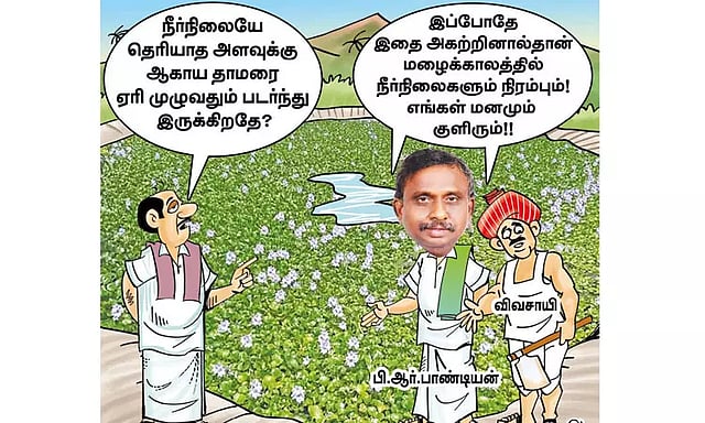 தமிழக அரசு போர்க்கால நடவடிக்கை எடுத்து பயன்பாட்டில் இல்லாத அத்தனை நீர்நிலைகளையும் பயன்பாட்டுக்கு கொண்டுவரவும், ஆக்கிரமிப்புகளை இரும்புக்கரம் கொண்டு நடவடிக்கை எடுத்து அகற்றவும் இதுவே சரியான நேரம். இதுபோல தமிழ்நாட்டில் உள்ள அனைத்து நீர்நிலைகளையும் பாழாக்கிக்கொண்டு தண்ணீரையே பார்க்க முடியாமல் படர்ந்து இருக்கும் ஆகாய தாமரையை அகற்றவும், தூர்வாரவும் இந்த கோடைகாலத்தில் ஒரு சிறப்பு திட்டம் வகுத்து செயல்பட்டால் மழைகாலத்தில் நீர்நிலைகளும் நிரம்பும், விவசாயிகள் உள்ளிட்ட மக்களின் மனமும் குளிரும் என்கிறார், அனைத்து விவசாயிகள் சங்கங்களின் ஒருங்கிணைப்பு குழு தலைவர் பி.ஆர்.பாண்டியன்.