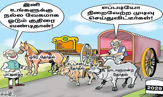 நாடு முழுவதும் 18-வது மக்களவை தேர்தலுக்கு தயாராகிக்கொண்டு இருக்கும் சூழ்நிலையில், 2029-ல் நடக்கும் அடுத்த தேர்தலின்போது, மாநிலங்களில் சட்டசபை தேர்தல்களையும் ஒரே நேரத்தில் நடத்தும்நிலை இப்போதே பா.ஜனதா அரசாங்கத்தால் உருவாக்கப்பட்டுவிட்டது. இந்த தேர்தல் முடிந்து 100 நாட்களில் உள்ளாட்சி தேர்தல் நடக்கும். 'ஒரே நாடு-ஒரே தேர்தல்' என்பதை பா.ஜனதா இப்போது சொல்லவில்லை. 1984-ல் நடந்த மக்களவை தேர்தலின்போது வெளியிடப்பட்ட தேர்தல் வாக்குறுதியிலேயே தெரிவித்துள்ளது. இதுதொடர்ந்து வலியுறுத்தப்பட்டு வந்தாலும், 2019-ல் நடந்த தேர்தலுக்கு பிறகுதான் 'ஒரே நாடு-ஒரே தேர்தல்' என்பது ஒரு முழு வடிவம் பெற்றது.