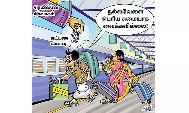 அதுபோல முன்பதிவில்லாத சாதாரண பெட்டிகளுக்கு 215 கிலோ மீட்டருக்கு மேல் ஒவ்வொரு கிலோ மீட்டருக்கும் ஒரு காசு வீதம் கட்டணம் உயர்த்தப்பட்டுள்ளது. பொதுமக்களுக்கு குறிப்பாக தினமும் பயணம் செய்யும் பயணிகளுக்கான சீசன் டிக்கெட் கட்டணம் மற்றும் மின்சார ரெயில் கட்டணம் உயர்த்தப்படவில்லை. 6 மாத இடைவெளிக்குள் மீண்டும் ரெயில் கட்டணம் உயர்த்தப்பட்டுள்ளதே என்று சிலர் குறைபட்டாலும், கடந்த ஜூலை மாதம் 5 ஆண்டுகளுக்கு பிறகுதான் கட்டண உயர்வு அறிவிக்கப்பட்டது. அதாவது 2020-ல் உயர்த்தப்பட்டபோது குளிர்சாதன வசதி செய்யப்பட்ட ரெயில் பெட்டிகளுக்கு கிலோ மீட்டருக்கு 4 காசுகளும், குளிர்சாதன வசதி இல்லாத ரெயில் பெட்டிகளுக்கு கிலோ மீட்டருக்கு 2 காசுகளும் உயர்த்தப்பட்டது ரெயில் பயணிகளை பெரிதும் பாதித்தது.