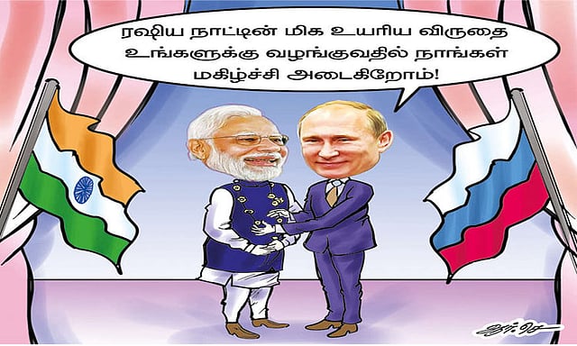 உக்ரைன் போரில் பணியாற்றும் இந்தியர்களை பிரதமரின் வேண்டுகோளை ஏற்று உடனடியாக விடுவிக்க ரஷிய அதிபர் புதின் உறுதியளித்துள்ளார். எல்லாவற்றுக்கும் மகுடம் வைத்தாற்போல பிரதமர் மோடிக்கு ரஷியாவின் 300 ஆண்டு பழமையான மிக உயரிய விருதாக கருதப்படும் 'ஆர்டர் ஆப் செயிண்ட் ஆண்ட்ரூ தி அபோஸ்தலர்' என்ற விருதை புதின் வழங்கி சிறப்பித்தது இந்தியாவுக்கு பெருமை சேர்ப்பதாக இருக்கிறது.