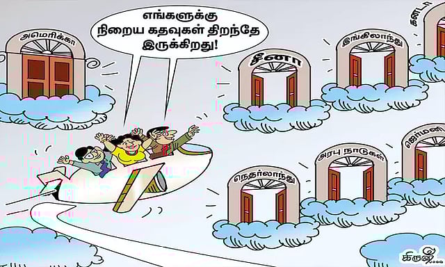 இந்த திடீர் உயர்வு இந்தியாவுக்கே பெரிய பாதிப்பை ஏற்படுத்தியுள்ளது. டாலர் கணக்கில் இந்த கட்டணம் ஒரு லட்சம் டாலராக இருக்கிறது. அமெரிக்காவில் புதிதாக வேலைக்கு செல்பவர்களுக்கு பெரும்பாலும் இந்த கட்டணத்தைவிட குறைவான சம்பளமே இருக்கிறது. 25 சதவீதம் பேர் ஆண்டுக்கு 77 ஆயிரம் டாலரே சம்பளமாக பெறுகிறார்கள். சற்று பணி அனுபவமும் திறன் மிகுதியும் உள்ளவர்கள் ஒரு லட்சத்து 30 ஆயிரம் டாலர் வரை பெறுகிறார்கள். இந்த நிலையில், இப்போது அறிவிக்கப்பட்ட ரூ.88 லட்சம் எச்-1பி விசா கட்டணம் அமெரிக்காவுக்கு போய் வேலை பார்க்கவேண்டும் என்ற இளைஞர்களின் கனவு கதவை மூடிவிட்டது என்றாலும் ஒரு கதவு மூடினால் மற்றொரு கதவு திறக்கப்படும் என்ற பழமொழிப்படி இப்போது ஒரு கனவல்ல மற்றும் பல நாடுகளில் இருந்து கனவு கதவுகள் திறக்கப்பட்டுள்ளன.