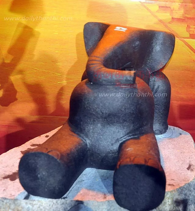 இந்த நிலையில் இன்று இரவு அங்கு திடீரென 2 அடி உயரத்தில் யானையின் கற்சிலை வைத்து பொதுமக்கள் சிறப்பு பூஜை நடத்தினர்.