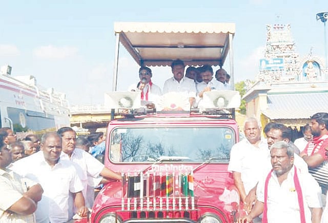 பெரம்பலூர் நாடாளுமன்ற தொகுதியில் மதசார்பற்ற முற்போக்கு கூட்டணி சார்பில் போட்டியிடும் இந்திய ஜனநாயக கட்சி வேட்பாளர் பாரிவேந்தர் திருச்சி மாவட்டம், தா.பேட்டை ஒன்றிய பகுதி கிராமங்களில் உதயசூரியன் சின்னத்திற்கு வாக்குகள் கேட்டு நேற்று பிரசாரம் செய்தார்.