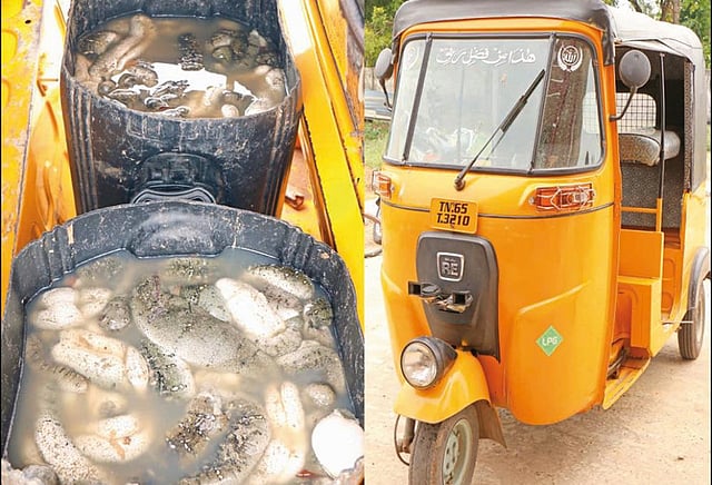 மண்டபம் கடலோர பகுதிகளில் கடல் அட்டைகள் பதுக்கப்பட்டு வருவதாக கடலோர போலீசாருக்கு தகவல்கள் கிடைத்தது. இதையடுத்து போலீசார் தீவிர ரோந்து பணியில் ஈடுபட்டு வந்தனர். இந்த நிலையில் நேற்று காலை மண்டபம் பெட்ரோல் நிலையம் அருகில் அந்த வழியாக வந்த ஒரு ஆட்டோவை நிறுத்தி போலீசார் சோதனை மேற்கொண்டனர். அப்போது அதில் சுமார் 60 கிலோ எடை கொண்ட கடல் அட்டைகள் இருப்பது தெரியவந்தது. இதையடுத்து அந்த கடல் அட்டைகளை பறிமுதல் செய்த போலீசார் அதனை கடத்தி வந்த மண்டபத்தை சேர்ந்த அப்துல் காதர்(வயது 23) என்ற வாலிபரை கைது செய்து, கடல் அட்டைகள் கடத்தி வந்து ஆட்டோவுடன் வனத்துறையினரிடம் ஒப்படைத்தனர். வனத்துறையினர் இதுதொடர்பாக வனத்துறை அதிகாரிகள் தீவிர விசாரணை மேற்கொண்டு வருகின்றனர்.