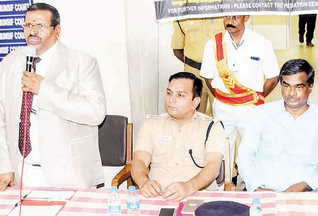 சமரச தீர்வு மையம் தொடங்கி 14-ம் ஆண்டு நிறைவடைந்ததையொட்டி இதுகுறித்து பொதுமக்களிடையே விழிப்புணர்வு ஏற்படுத்தும் வகையில் திருச்சி மாவட்ட சமரச தீர்வு மையத்தில் நிகழ்ச்சி நேற்று நடைபெற்றது. நிகழ்ச்சிக்கு மாவட்ட முதன்மை நீதிபதி குமரகுரு தலைமை தாங்கினார். மேலும் சமரச தீர்வு மையத்தின் செயல்பாடுகள் குறித்து விழிப்புணர்வு அடங்கிய துண்டு பிரசுரங்களை அவர் பொதுமக்களுக்கு வழங்கினார். நிகழ்ச்சியில் நிலுவையில் உள்ள சிவில், குடும்பநலம், காசோலை வழக்குகள் என மொத்தம் 104 மனுக்களுக்கு சமரச தீர்வு காணப்பட்டது. நிகழ்ச்சியில் தலைமை குற்றவியல் நடுவர் நீதிமன்ற நீதிபதி சத்தியதாரா, மாவட்ட போலீஸ் சூப்பிரண்டு ஜியாவுல்ஹக், மாநகர துணை போலீஸ் கமிஷனர் மயில்வாகனன், மாநகராட்சி ஆணையர் ரவிச்சந்திரன், அரசு வக்கீல் ஜெயராமன் உள்பட நுகர்வோர் அமைப்பினர், வக்கீல்கள், பொதுமக்கள் பலர் கலந்து கொண்டனர்.