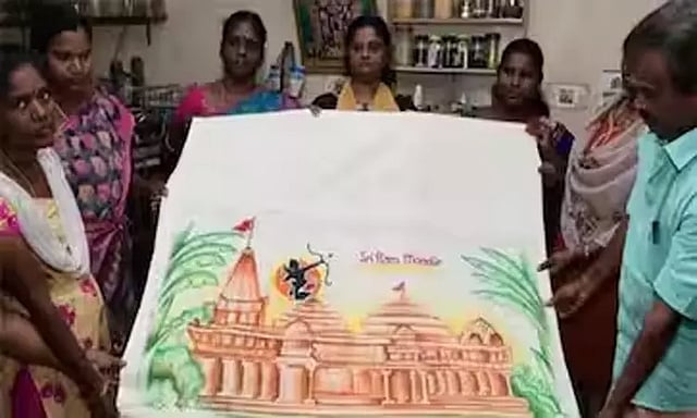 இந்த நிலையில்,இயற்கை நார் நெசவு குழுமம் 22-ம் தேதி நடைபெறவுள்ள ராமர் கோவில் கும்பாபிஷேகத்திற்கு, வாழை நாரில் புடவையை சீதாதேவிக்காக செய்து அனுப்ப திட்டமிட்டுள்ளனர். அதன்படி பத்து நாட்களாக இரவு, பகலாக நெய்து, ராமர் கோவில் வடிவமைப்புடன் கூடிய புடவையை தயார் செய்துள்ளனர்.