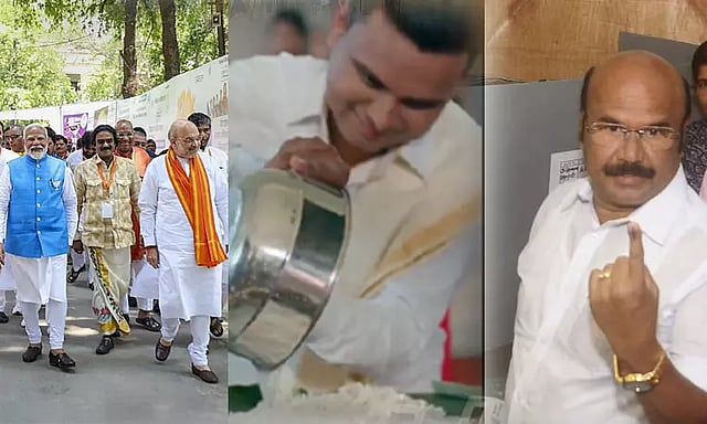 வி.கே.பாண்டியன் அவர்களை போன்ற ஒருவர் வேட்டி-சட்டை அணிந்து இருப்பதாக அனைத்து விளம்பரங்களிலும் பாஜக சித்தரித்துள்ளது.