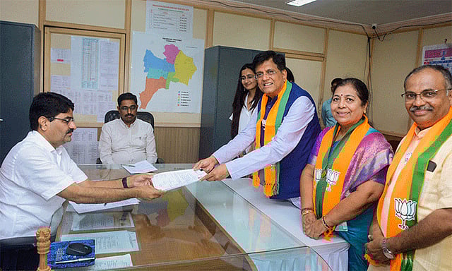 வடக்கு மும்பை மக்களவை தொகுதிக்கு வரும் மே 20-ந்தேதி வாக்குப்பதிவு நடைபெற உள்ள நிலையில், அங்கு பியூஷ் கோயல் தீவிர வாக்கு சேகரிப்பில் ஈடுபட்டு வருகிறார். இந்நிலையில் பியூஷ் கோயல் இன்று பாந்த்ரா தேர்தல் அதிகாரியிடம் தனது வேட்புமனுவை தாக்கல் செய்துள்ளார். அந்த தொகுதியில் காங்கிரஸ் சார்பில் இன்னும் வேட்பாளர் அறிவிக்கப்படவில்லை என்பது குறிப்பிடத்தக்கது.