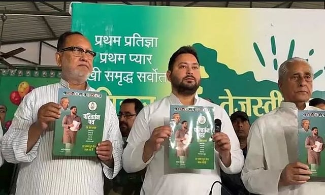 இந்நிலையில் பீகாரில் பிரதான எதிர்க்கட்சியான ஆர்.ஜே.டி. தேர்தல் அறிக்கையை வெளியிட்டுள்ளது. இந்த தேர்தல் அறிக்கையை பீகார் மாநில முன்னாள் துணை முதல்-மந்திரியும், கட்சியின் முன்னணி தலைவருமான தேஜஸ்வி யாதவ் இன்று வெளியிட்டார். கட்சியின் முன்னணி தலைவர்கள் மத்தியில் 24 வாக்குறுதிகளை கொண்ட தேர்தல் அறிக்கையை தேஜஸ்வி யாதவ் வெளியிட்டார்.