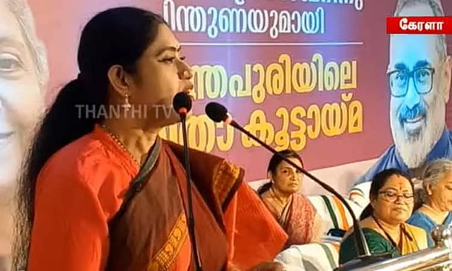 அந்த வகையில் கேரள மாநிலம் திருவனந்தபுரம் மக்களவை தொகுதியில் போட்டியிடும் பா.ஜ.க. வேட்பாளரான மத்திய மந்திரி ராஜீவ் சந்திரசேகருக்கு ஆதரவாக பா.ஜ.க. மகளிர் அணி சார்பில் பிரசார கூட்டம் நடைபெற்றது. இதில் விளவங்கோடு தொகுதி முன்னாள் எம்.எல்.ஏ. விஜயதாரணி பங்கேற்று பேசினார். அப்போது அவர் மலையாளம், தமிழ், ஆங்கிலம் என மூன்று மொழிகளில் பேசி பா.ஜ.க. வேட்பாளருக்கு ஆதரவாக வாக்கு சேகரித்தார்.
