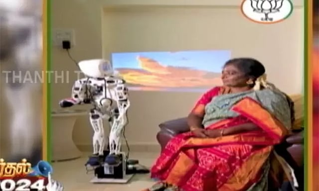 இந்த நிலையில், தேர்தல் பிரசாரம் சூடுபிடித்துள்ள நிலையில், தென்சென்னை பாஜக வேட்பாளர் தமிழிசை சவுந்தரராஜன் ஏ.ஐ. தொழில்நுட்பத்தில் உருவாக்கப்பட்ட ரோபோவிடம் தனது வெற்றி வாய்ப்பு குறித்து கலந்துரையாடினார்.