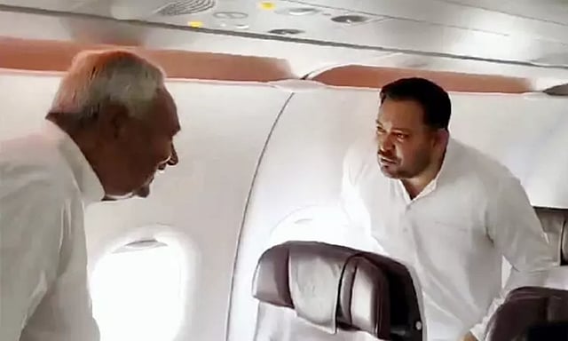 அப்போது, ஒருவரை ஒருவர் பார்த்து கொண்டனர். தேஜஸ்வியை பார்த்து நிதீஷ் குமார் புன்னகைக்கும் புகைப்படம் ஒன்று வெளியானது. இருவரும் ஒரே விமானத்தில் 3 அடிக்கும் குறைவான தொலைவில் அமர்ந்து இருந்தனர்.