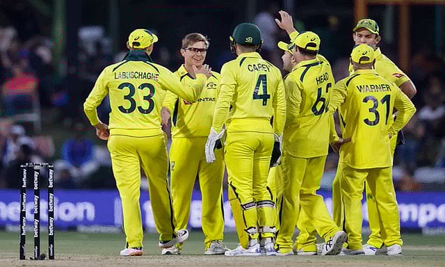 அந்த அணி 50 ஓவர்கள் முடிவில் 8 விக்கெட் இழப்புக்கு 392 ரன்கள் குவித்தது. ஆஸ்திரேலிய அணியின் தொடக்க ஆட்டக்காரரான டேவிட் வார்னர் மற்றும் லபுஷேன் இருவரும் சதமடித்து அசத்தினர். அத்துடன், ஹெட், ஹோஸ் இங்லிஸ் ஆகியோர் அரைசதம் அடித்தனர். தென் ஆப்பிரிக்க அணி தரப்பில் சம்ஷி அதிகபட்சமாக 4 விக்கெட்டுகளை கைப்பற்றினார்.