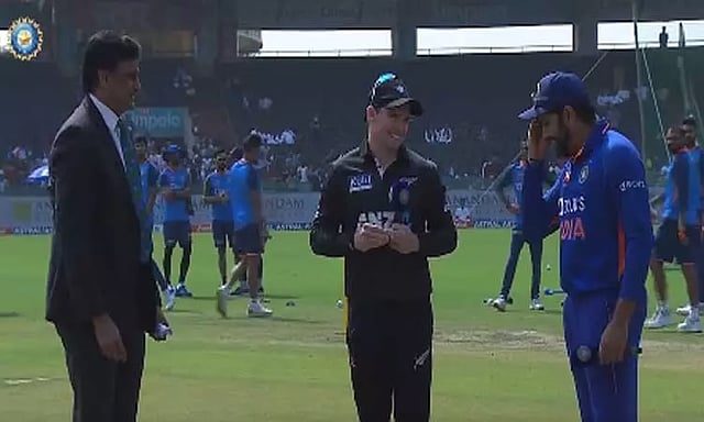 இந்த நிலையில் இரு அணிகளுக்கும் இடையிலான 2வது ஒருநாள் போட்டி இன்று மதியம் நடைபெற்று வருகிறது. இந்த போட்டியில் டாஸ் வென்ற இந்திய கேப்டன் ரோகித் சர்மாக சில வினாடிகள் யோசித்த பின்னர் பந்துவீச்சை தேர்வுசெய்தார். அதன்படி நியூசிலாந்து அணி முதலில் பேட்டிங் செய்ய உள்ளது.