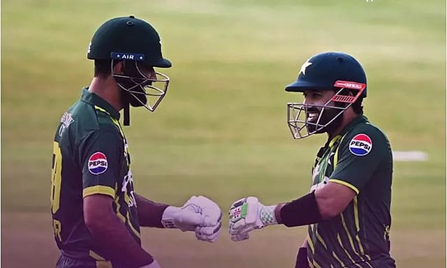இதனையடுத்து 194 ரன்கள் அடித்தால் வெற்றி என்ற இலக்கை நோக்கி களமிறங்கிய பாகிஸ்தான் அணிக்கி தொடக்க ஆட்டக்காரர் ஆன சைம் அயூப் 6 ரன்களிலும், அவரை தொடர்ந்து பாபர் அசாம் டக் அவுட் ஆகியும் ஏமாற்றம் அளித்தனர்.