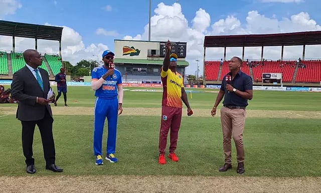 இந்நிலையில் இந்த ஆட்டத்துக்கான டாஸ் சுண்டப்பட்டது. இதில் டாசில் வென்ற வெஸ்ட் இண்டீஸ் அணி முதலில் பேட்டிங் செய்வதாக அறிவித்துள்ளது. இந்திய அணியில் யஷஸ்வி ஜெய்ஸ்வால் அறிமுக வீரராக இடம் பிடித்துள்ளார்.