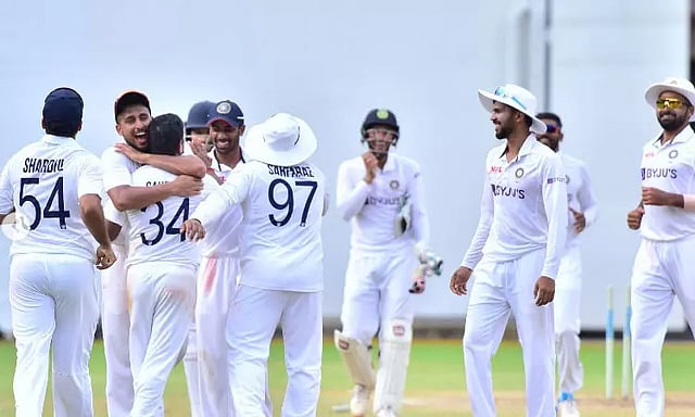 இந்த போட்டியில் டாஸ் வென்று முதலில் பேட்டிங் செய்த இந்திய அணி ருதுராஜ் கெய்க்வாட்-யின் சதத்தால் முதல் இன்னிங்சில் 293 ரன்கள் குவித்துள்ளது. சிறப்பாக விளையாடிய ருதுராஜ் கெய்க்வாட் 107 ரன்கள் எடுத்து ஆட்டமிழந்தார்.
