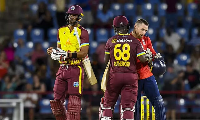 இதையடுத்து 219 ரன் எடுத்தால் வெற்றி என்ற இலக்குடன் களம் இறங்கிய வெஸ்ட் இண்டீஸ் 19 ஓவர்களில் 5 விக்கெட்டை மட்டும் இழந்து 221 ரன்கள் எடுத்து வெற்றி பெற்றது. வெஸ்ட் இண்டீஸ் தரப்பில் எவின் லீவிஸ் 68 ரன்கள் எடுத்தார். இங்கிலாந்து தரப்பில் ரெஹான் அகமது 3 விக்கெட்டுகள் வீழ்த்தினார்.